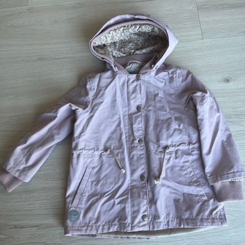 Selger en vindjakke (uten polstring) i nydelig lys lilla syrin farge. Litt liten i str, passer nok fra ca 8 år