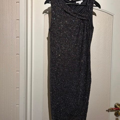 Nelly festkjole i svart farge, størrelse L for kvinner. Kjolen har lange ermer og er laget av et glatt materiale. Egnet for formelle anledninger og festbruk.