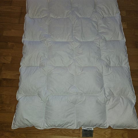 Dundyne av merket Dozy med norsk dun. Str 80x100 cm. Vekt 185 gram. 90% dun og 10% små fjær.