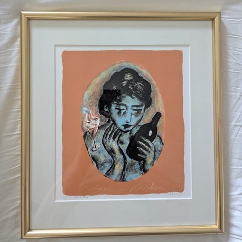 På grunn av plassmangel vurderer jeg å selge et litografi av Hans Normann Dahl. Tittel på bildet er «Slør». Det er nr 5 av 100. Bildet er rammet inn med en pen og kraftig sølvramme.