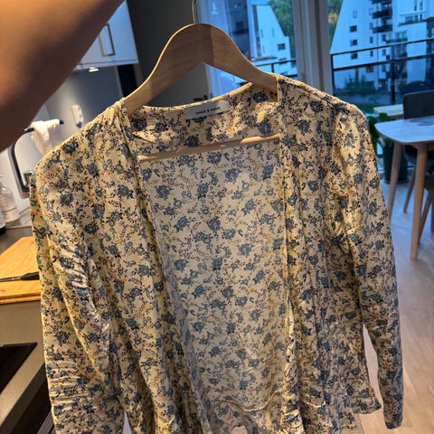 Samsøe Samsøe bluse for dame i størrelse S. Blusen er blå og har kort erm, klassisk krage og knappelukking foran. Passer til hverdagsbruk eller mer formelle anledninger, og kan kombineres med både bukser og skjørt.