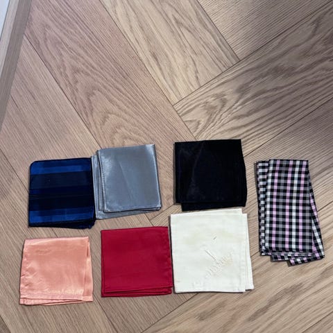 herre lommetørkle med blått rutemønster. Lommetørkleet har en klassisk design med flere nyanser av blått og gult i rutemønster. Materialet er glatt og lett, egnet for formelle anledninger.