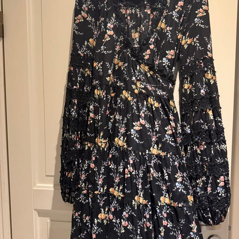 byTiMo Hverdagskjole i størrelse L, svart med blomsterprint. Kjolen er designet for kvinner og egner seg til hverdagsbruk.