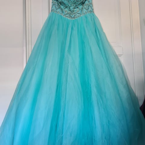 Kjolen ble kjøpt ny hos Tina Ritzi i Drammen i januar 2025. Den er brukt en kveld og fremstår som ny. Den har snøring i ryggen og kan derfor justeres. Lekker fiskebeinsnøring i ryggen.