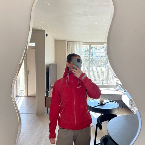Jakken veier lite og er lett å pakke med seg i sekken. Gode justeringsmuligheter på hette/krage. Borrelås ermer.
