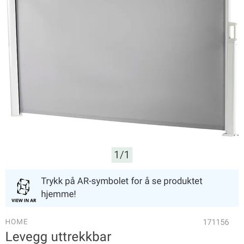 Utrekkbar levegg 1,4 x 3 meter, lys grå
