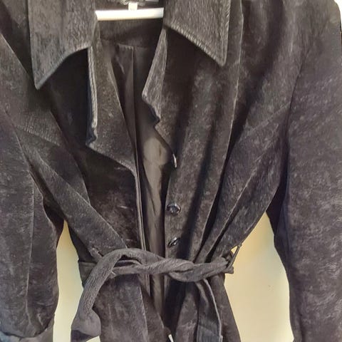 Elsket denne korte tøffe jakka fra Floyd! Så kul over en fin t-skjorte eller topp. Str. XL, men heller liten en stor i størrelsen. Jeg er XL, str. 42/44 nå, og den er litt smal over ryggen for meg selv om jeg får den fint på. Jakka har et stilig design og mange kule detaljer. Tøff litt bred sølvfarget glidelås. To fine lommer. Innfelt "vaffelstopp" både i sidene og på ermene. Innsvinget og kledelig fasong. Vintage fra slutten av 90-tallet. Selges for 400 kr. Kan hentes i Asker eller Oslo, eller sendes mot porto