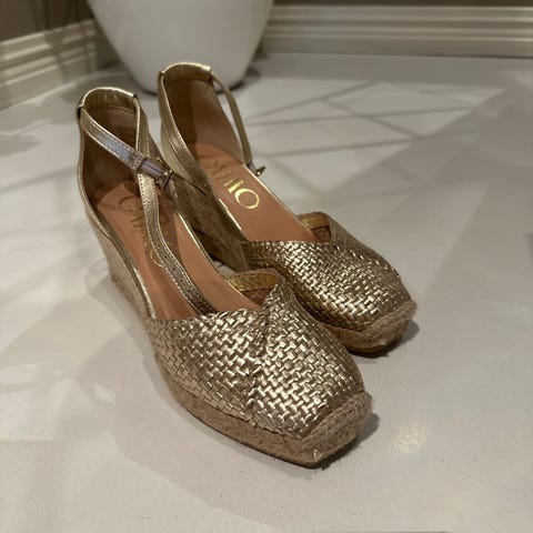 Lekre Gaimo sandaler i gullfarge, størrelse 39 selges grunnet opprydding. Kun brukt en gang i bryllup.