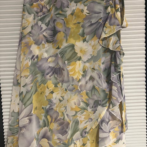 H&M flerfarget skjørt i størrelse 38 for kvinner. Skjørtet har et mønster med grønne og svarte toner, og er laget av lett materiale. Passer til daglig bruk og ulike anledninger. Det er miniskjørt