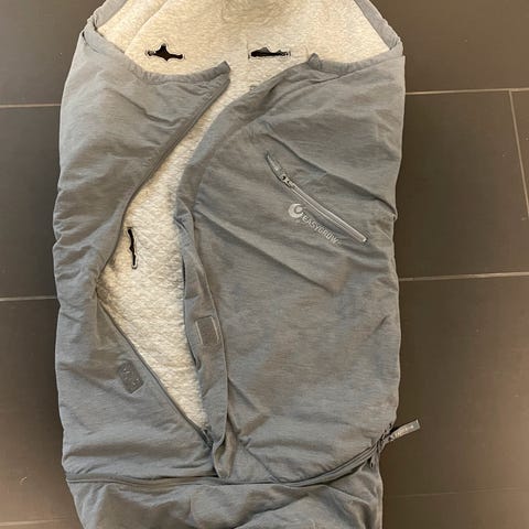 Vår/høstpose fra Easygrow. Brukt til et barn. Bilder er tatt med forlengerdel ute, den kan lukkes for å få den kortere. Følger med matchende smekke i samme stoff.