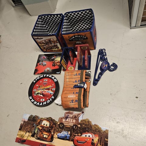 Kjør en rask og kul bursdagsfeiring med dette komplette settet til racingbil-tema! Alt du trenger for å dekorere er inkludert. Settet er perfekt for den lille racingføreren i familien og er i bra stand.