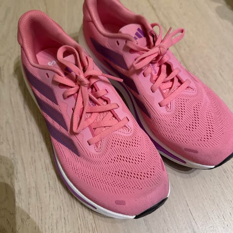 Adidas sneakers joggesko i størrelse 37. Skoene er hvite med detaljer i lys beige og har snøring. Designet for komfort og daglig bruk.
