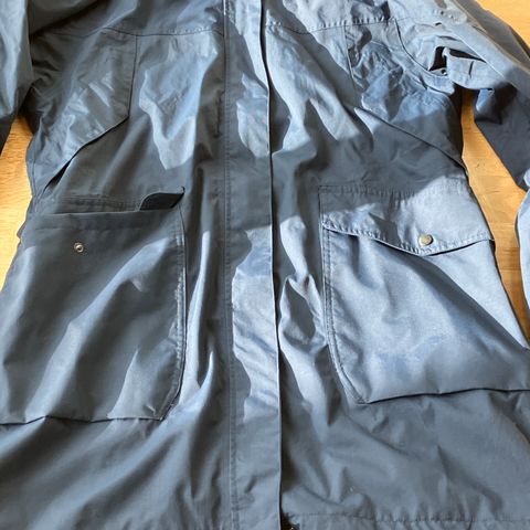 Fin anorakk/turjakke (Kaipak jacket W) med stretch fra Fjällreven i marineblå farge (dark navy) for dame. Lite brukt og fremstår som ny. Flere gode praktiske lommer og god hette. Ganske vindtett og noe vannavvisende, men ikke vanntett.