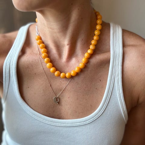 Sjekk gjerne profilen min – jeg har flere (og legger av og til ut nye) one of a kind smykker laget av edelsteiner og natursteiner som jade (jade), onyx (onyks), agate (agat), red carnelian (rød karneol), topaz (topas), amazonite (amazonitt), turquoise (turkis), lapis lazuli (lapis lazuli), quartz (kvarts) og chalcedony (kalsedon). Låsene er av topp kvalitet. Minner om Mary fra Lié studio, Lie studio, Anni lu, tarinii, sophie buhai, sophie bille bahe, og i samme stil som cos, Céline, Jil Sander, Arket, Totême, toteme, old Celine, tibi, the row ganni skall studio éesome xs s m l Maria Black khaite miu miu tom wood jane kønig ysl bottega veneta Jil Sander # beaded necklace bead sezane