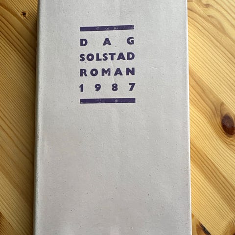 Dag Solstad sin Roman 1987 er tredje bind i den såkalla Telemark-trilogien, etter Gymnaslærer Pedersens beretning om den store politiske vekkelsen som har hjemsøkt vårt land (1982) og Forsøk på å beskrive det ugjennomtrengelige (1984). Her møter vi igjen den intellektuelle og desillusjonerte typologien som går att i mykje av Solstads forfattarskap – menn på leting etter ei meining i etterdønningane av eit politisk og eksistensielt prosjekt som har brote saman.
