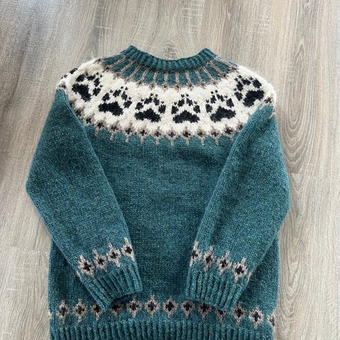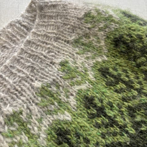 Strikket i Alafosdlopi og Blåne Pelsullgarn.