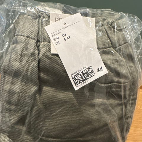 H&M barnebukse i størrelse 116, grå farge, unisex modell. Buksen har elastisk midje og fotstropper som holder buksen på plass. Egnet for barn og laget i slitesterkt materiale. Røyk og dyrefritt hjem.