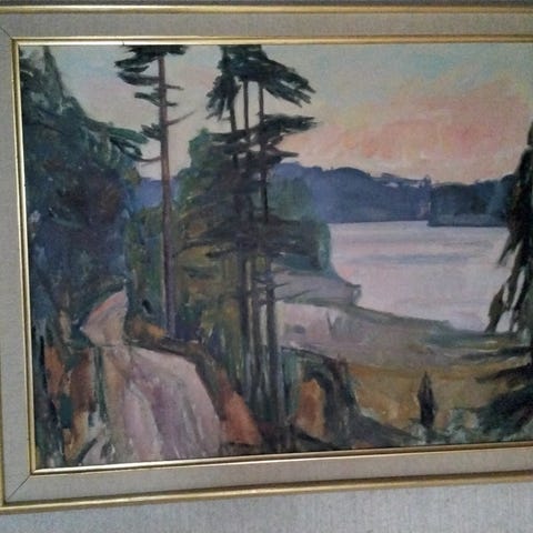 Se bilder, flott fargerikt oljemaleri på plate, signert og datert arne sandberg 44, mål inkludert ramme l ca: 66 cm h ca 57 cm. Selges kr 1900