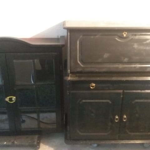 Pent veggskap i tre selges! Skapet er i god stand, og glasset i døren har et pent grønnskjær i seg.