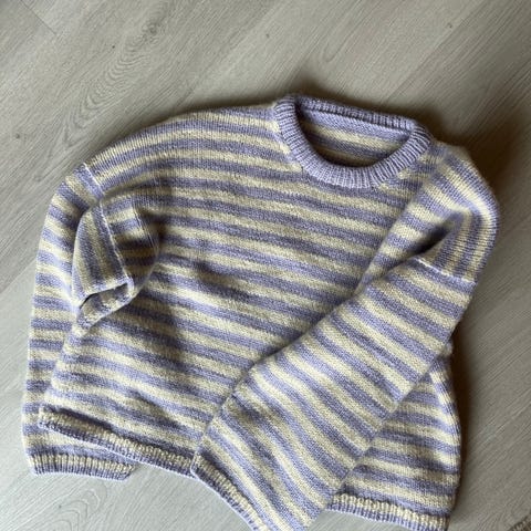 Hjemmestrikket genser ca str m. Se bilde for mål. 3/ 4 arm. Husker ikke hva slags garn den er strikket med, men myk og god.