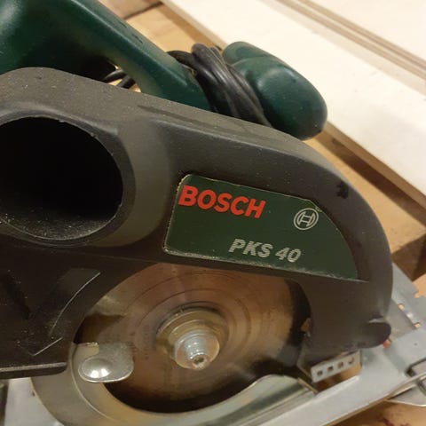 Bosch PKS 40 S sirkelsag med elektrisk motor på 400 watt. Verktøyet har en kompakt og ergonomisk design med svart og grønn farge. Egnet for presisjonskutting i tre og andre materialer. Passer for både hobbybruk og lettere profesjonelt arbeid.