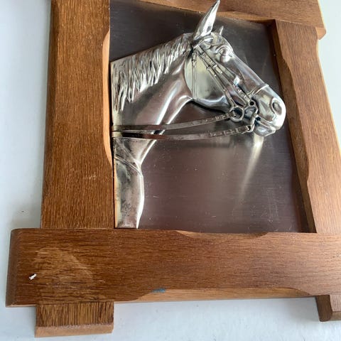 Ukjent Hestemotiv Relieff metall Bilde i Tre Ramme