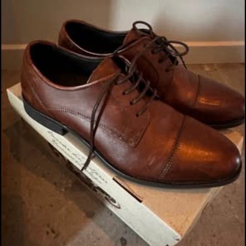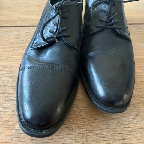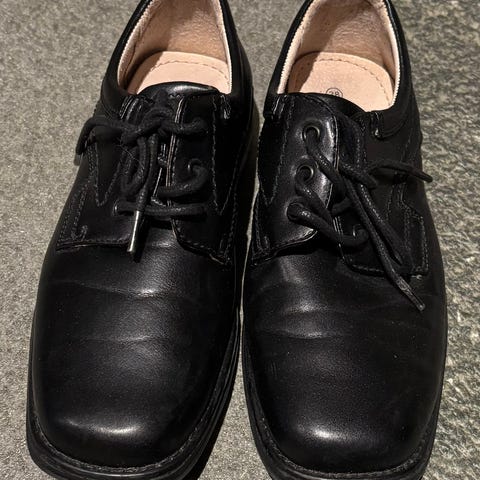 Skoene er av skinn og ikke brukt.