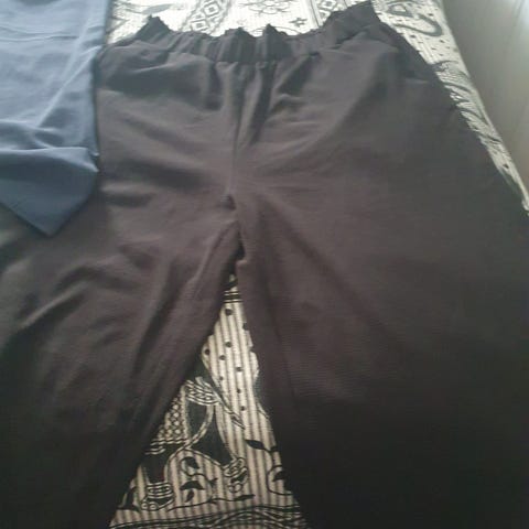 Svart bukse med "knapper"t pynt selges kr 130,-