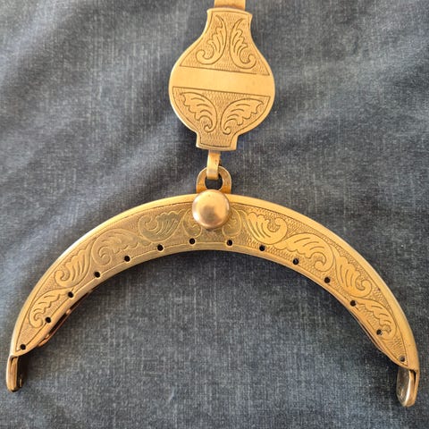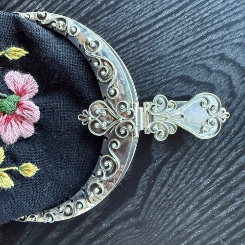 Nydelig veskelås til bunadsvesken. Denne er i ekte sølv og gammelforgylt, ergo noe høyere prisklasse.