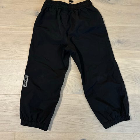 Pent brukt utebukse fra Reflex i sort. Buksen har strikk i livet og justering med snøring. Den har også gummistrikk under føttene som er i god stand. Perfekt som overtreksbukse i barnehagen eller til tur.