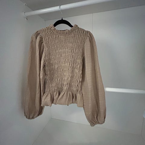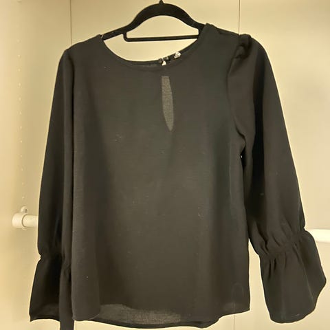 Pent brukt sort bluse i str S fra Freequent. Det er strikk nederst på ermene.