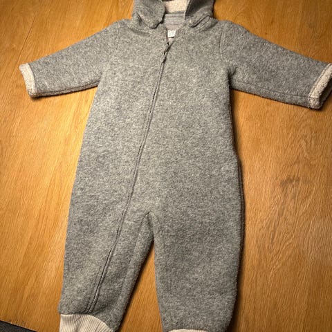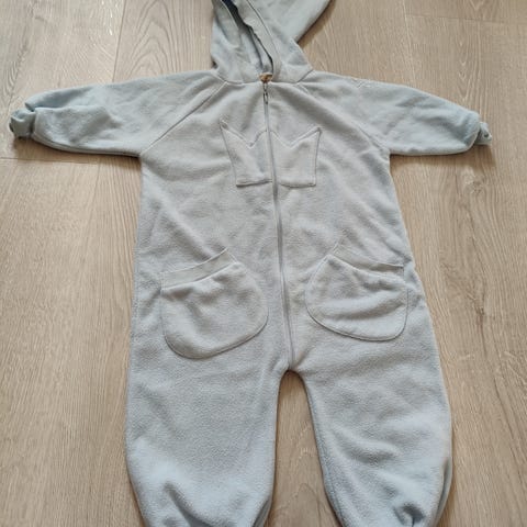 Pent brukt hvit Mohini heldress med søte ører. Str 80 men fungerer bedre til 68-74 syns jeg. Kan brukes som lett vognposeKan åpnes med to glidelåser så lett å ta av og på.