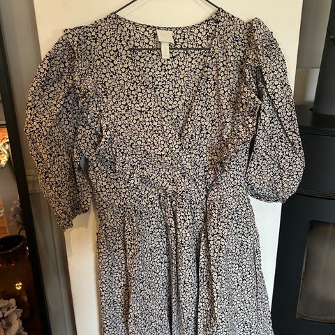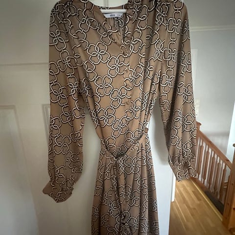 Pen kjole fra Sisters Point i str XS, men er romslig og passer også til S. Kjolen er lys i bunnen med beige og blå dekor. Meget pent brukt kjole, brukt 2 ganger og har ingen bruksmerker.