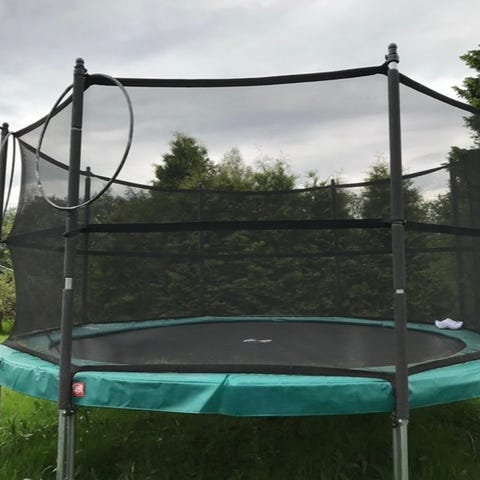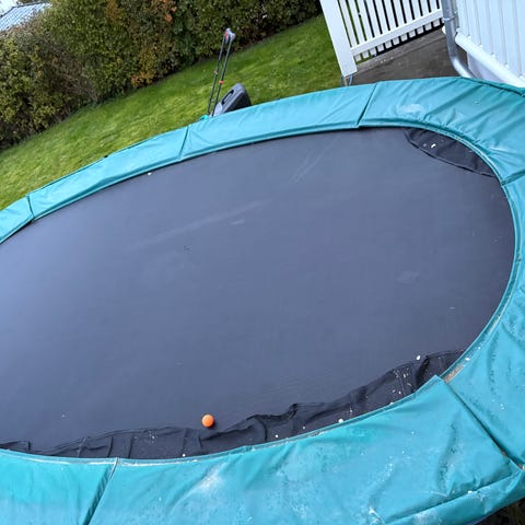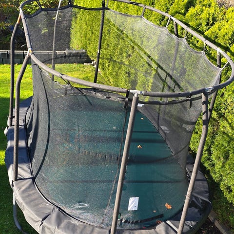 En fjær for trampolineduken er borte. Det har lite betydning da det er mange igjen, men finnes også å skaffe ny.