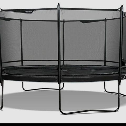 Oval trampoline 4,57x3,05 meter. Inkludert komplett ramme og sikkerhetsnett.