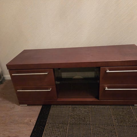 Ene skuffa er litt skjev og et klistremerke som sitter fast i en annen skuff. Ellers svært lite bruksmerker.