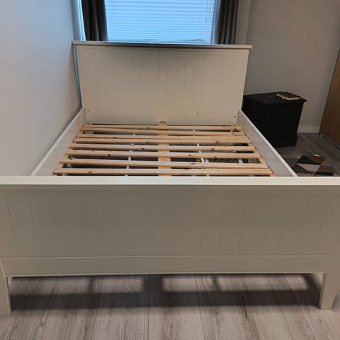 BUSUNGE skyveseng. Hvit. Noen bruksmerker og klistremerker. Pris: 500,-