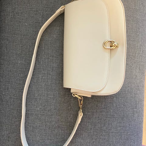Nydelig dus rosa/beige veske fra Carven med sølvdetaljer. Brukt noen få ganger. Avstivet skinn med regulerbar skulderstropp. Stramt og tidløst snitt.