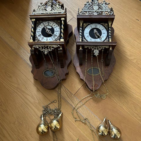 Mekanisk, opptrekkbart veggur med pendel. Merke Genfa. Uret er fra 1980-tallet og i god stand.