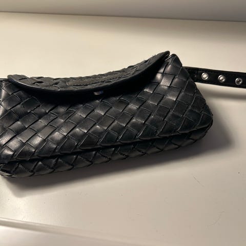 Ukjent merke vesker med kjede for bærehåndtak. Innvendig er det flere rom og lommer for oppbevaring. Passer til bruk som håndveske ved formelle anledninger.