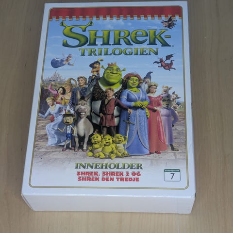 DreamWorks Shrek DVD samling med fire filmer: Shrek, Shrek 2, Shrek den tredje, og Shrek - Lykkelig alle sine dager. Filmene er på DVD-format og inkluderer animasjonsfilmer med hovedkarakterer som Shrek, Donkey, og Fiona. Passer for alle aldre.