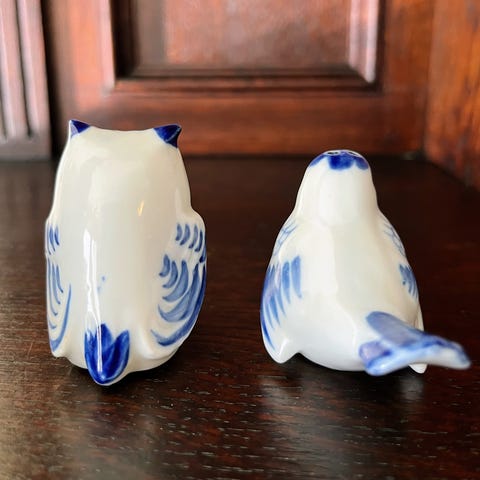 Det er et salt- og pepperbøssesett, utformet som kalkuner