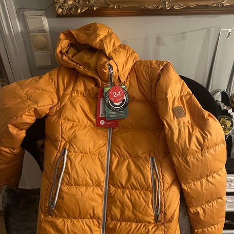 Pent brukt softshelljakke med avtagbar hette og justering i hetten og strammemuligheter nederst i jakken. Tre lommer. En liten skade og et par flekker nederst på jakken, se bilde.