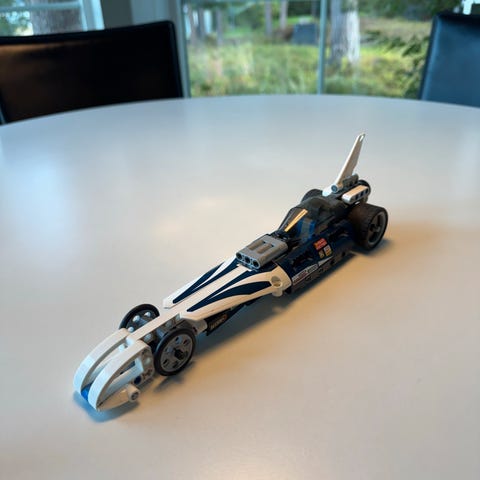 Slå fartsrekorder med LEGO® Technic Rekordknuser! Denne slanke, aerodynamiske dragsteren har et superkult blått, hvitt og grått fargevalg, tonet kalesje, detaljert motor og en kraftig pull-back-motor med høy hastighet.