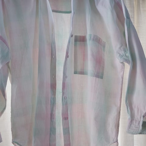 BONDELID rosa og hvit smårutet bluse 100% lin
