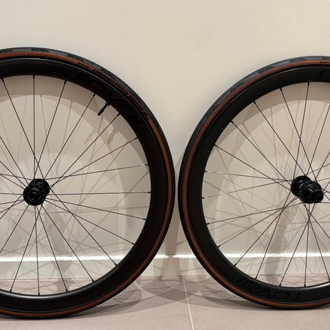 Komplett hjulsett i carbon. Toppmodell Shimano Dura-Ace C60 WH-R9100. Følger med Tubolito slanger og nye Continental GP 5000 25mm dekk. Hjulsettet er svært pent og lite brukt.