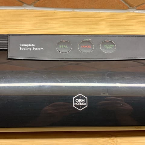 Vakuumeringsmaskin selges. Den er designet for å vakuumere mat for bedret holdbarhet eller sousvide.