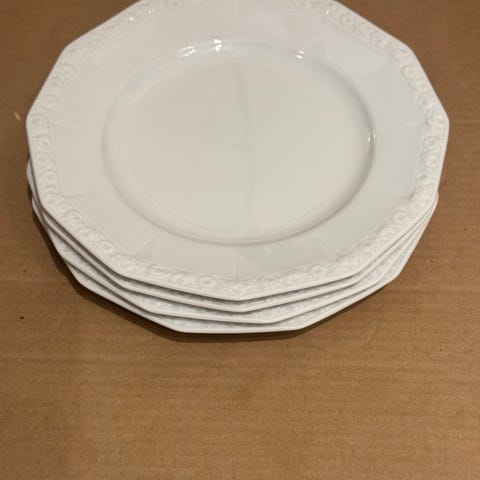 4 frokost tallerkner . Den ene er godt krakelert den andre er litt krakerlert . Se bilder . Koselig Engelsk servise . Selges samlet for 200 kr . Kan sendes med post nord for 130 kr eller posten for 140 kr eller fiks ferdig . Pakker godt i bobleplast og papir ved sending . Eller kan hentes etter avtale .
