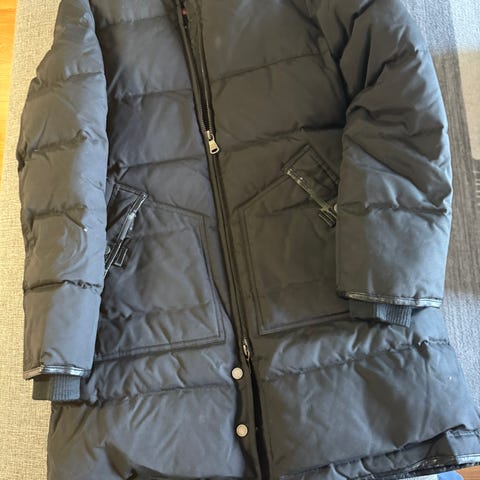 Vinterjakke med dun, brukt men i god stand. Lommer foran. Lengde 100 cm.