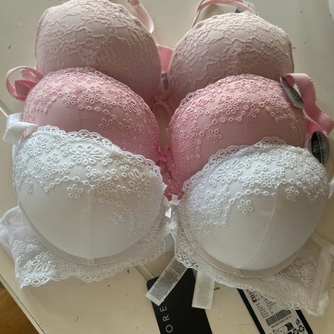 Kjøpte ca et år siden hos New Yorker original pris 90kr. Selger den videre siden den ikke passer meg lengre. Har brukt den en del. Størrelsen er 85 D. Nyvasket